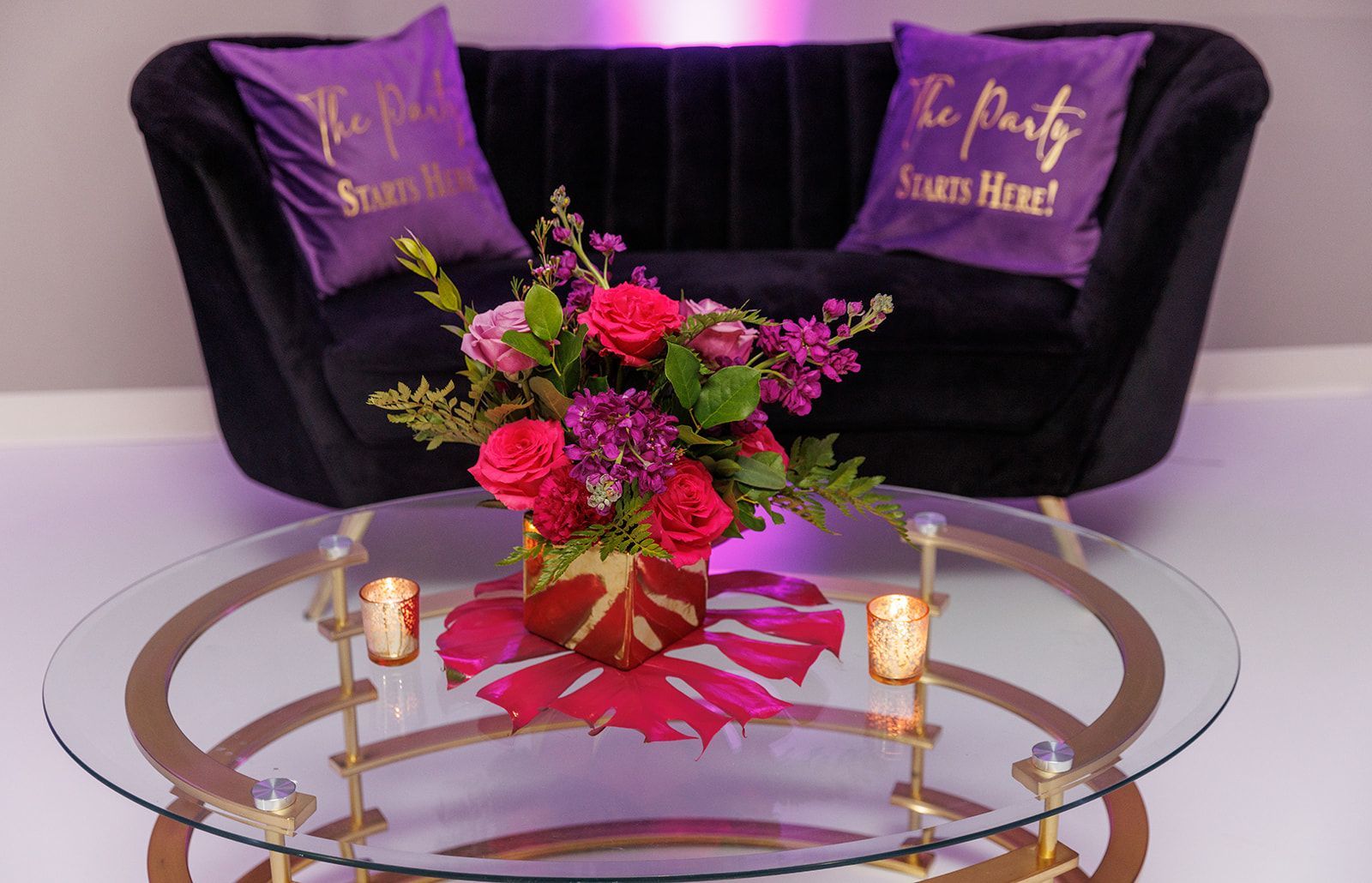 Create a STATEMENT area that demands all the attention with our Rental Styled Options. Our Statement option includes thrones, letter tables, custom backdrops, uplighting, pillows and a rug.